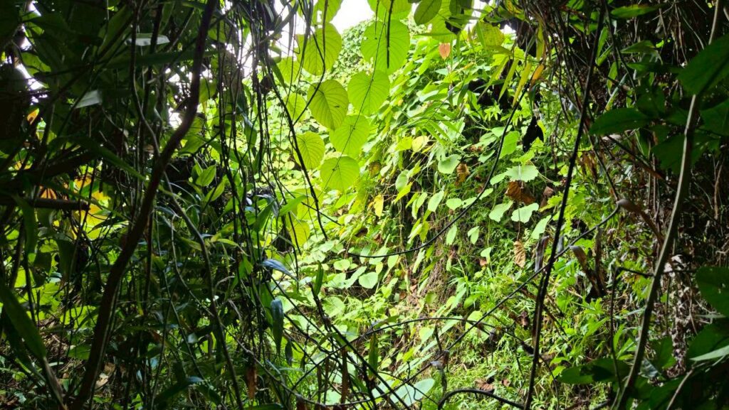 また、パークボランティア活動の下見では、活動を行う場所までのアクセスや効果的な防除を行うための戦略などについて確認をしました。急勾配の場所も多く、パークボランティアや企業ボランティアの皆さんが安全に活動するための道のりを探し出すのは大変でしたが、無事にアクセルのしやすい道を見つけることが出来ました。西表島は山がちな場所が多くアクセスの難しい場所が多いため、今回の下見を通して、西表島における外来種防除の難しさを肌で感じることが出来ました。