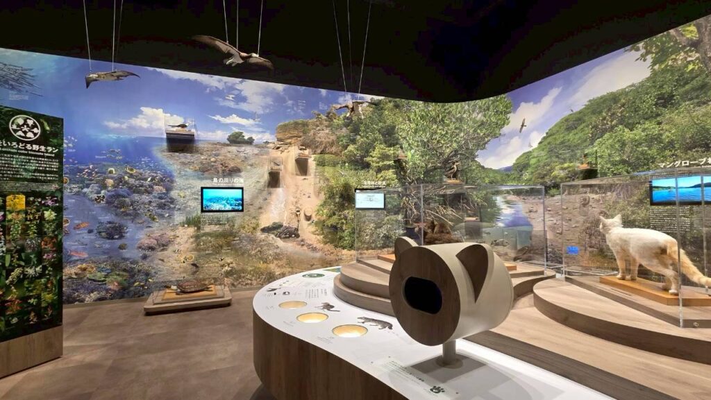 西表野生生物保護センターでは、展示解説を通して展示に込められた思いや工夫、そしてレクチャーにより西表島の自然を守るための国立公園管理についてよりよく知ることが出来ました。2022年にリニューアルされた野生生物保護センターの展示は、壁一面を彩る絵画で自然を表現するだけにとどまらず、多くの工夫が凝らされており、来館者が展示を見て、聞いて、触って、嗅いで、多様な知覚を刺激しながら自然や野生生物について、学べるつくりとなっています。非常に充実した展示で来館者が能動的に体験して西表島の自然への理解を深めるための創意工夫が凝らされた素敵な展示となっているので、西表島を訪れた際には、ぜひ来館していただきたいです。